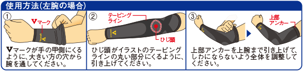 ・ひじ頭がテーピングラインの丸い部分にくるように、引き上げてください。