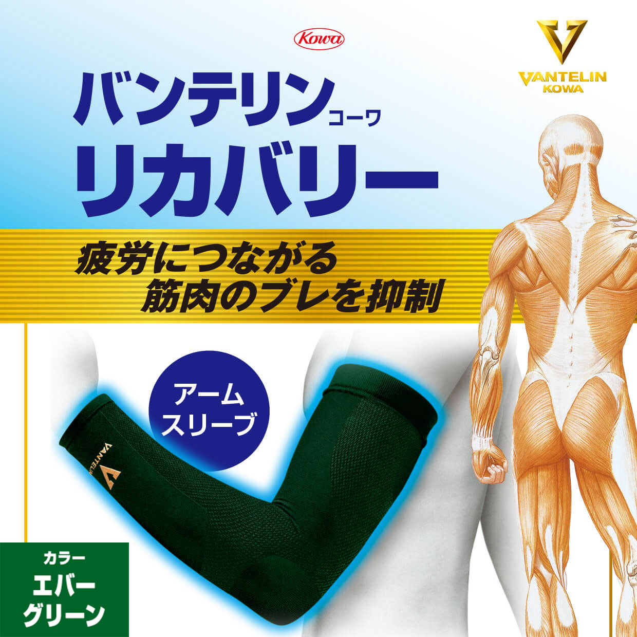 バンテリンコーワリカバリー アームスリーブ エバーグリーン 左右共通2枚入り