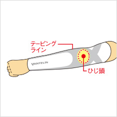 ・ひじ頭がテーピングラインの丸い部分にくるように、引き上げてください。