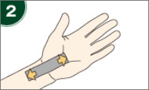 テープの中心を痛む部位に貼り、上下に引っ張りながら貼る