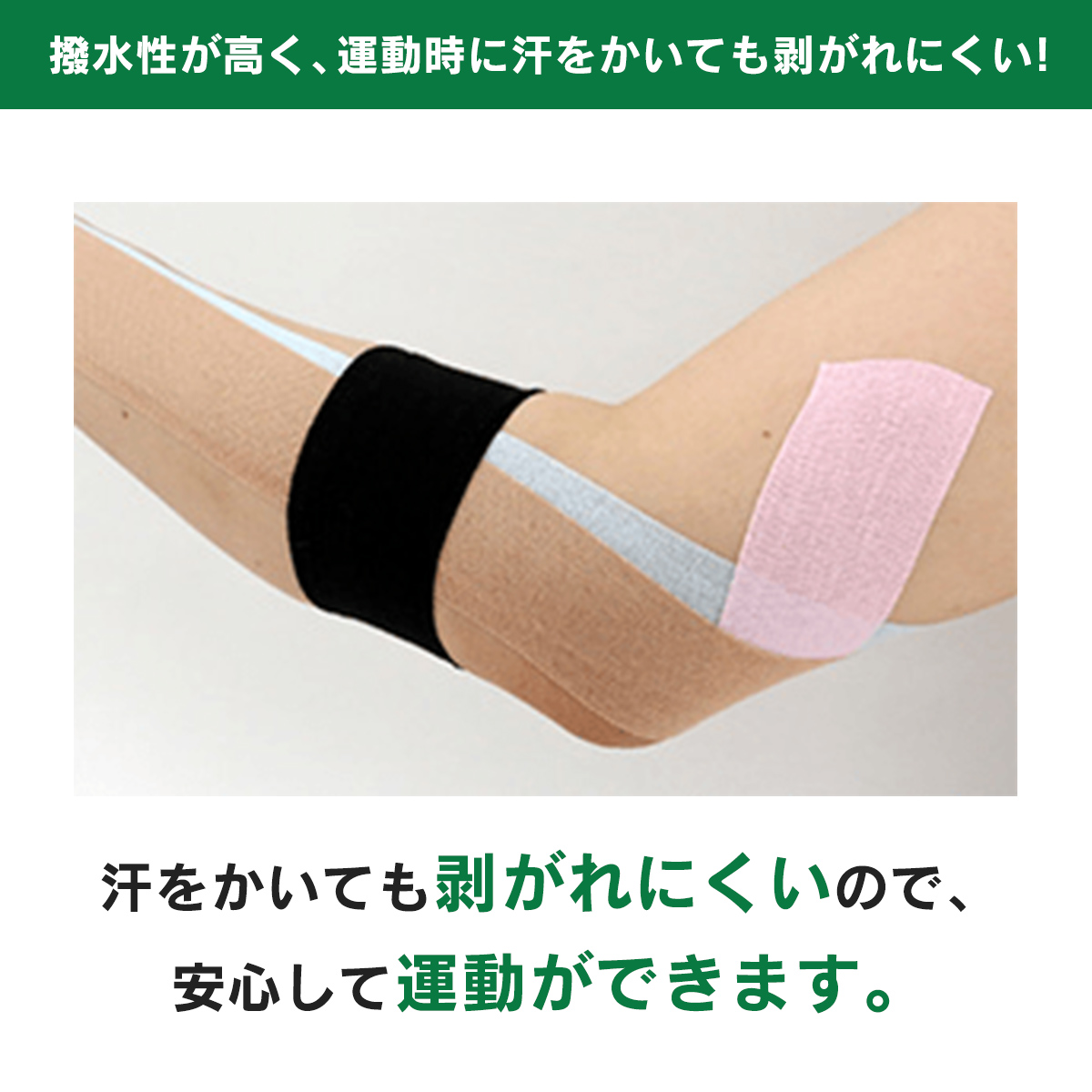 撥水性が高く、運動時に汗をかいても剥がれにくい!