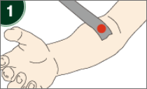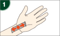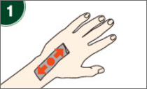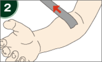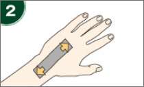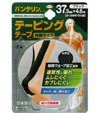 テープの中心を痛む部位に貼り、上下に引っ張りながら貼る