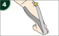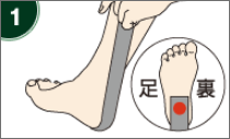 床に足をつけ、Aを足裏から、ふくらはぎの内側に貼る
