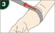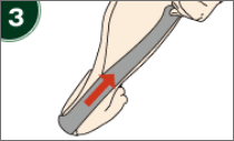 ひじを少し曲げた状態で引っ張りながら貼り始める