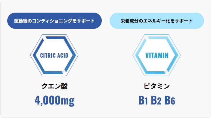 クエン酸は、レモンなどの柑橘類や梅干しなどに含まれる酸味成分です。運動後のコンディショニングをサポートすることが期待できます。