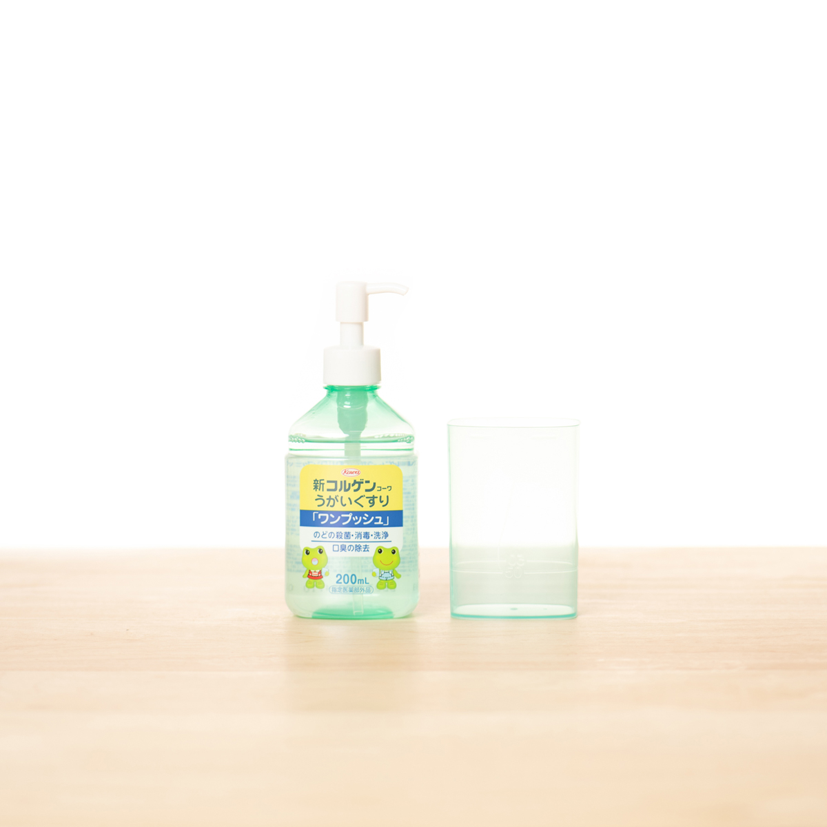 1回約1mL(1押し)を約50mL(コップ約1/4量)の水にうすめてうがいしてください。