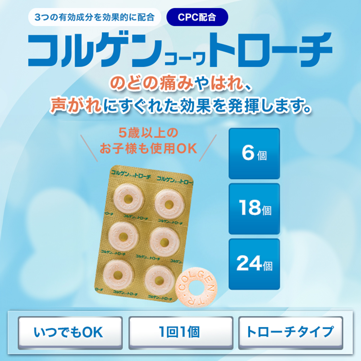 [ 添加物 ] ブドウ糖、白糖、乳糖、ヒドロキシプロピルセルロース、黄色五号、デキストリン、l-メントール、香料、ステアリン酸Mg