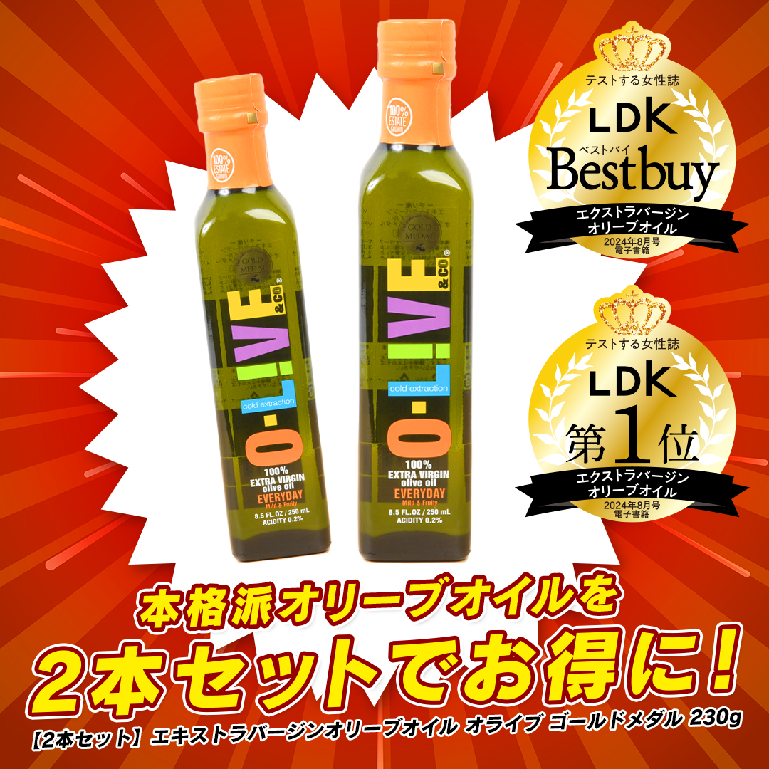 【2本セット】エキストラバージンオリーブオイル オライブ ゴールドメダル 230g x 2本