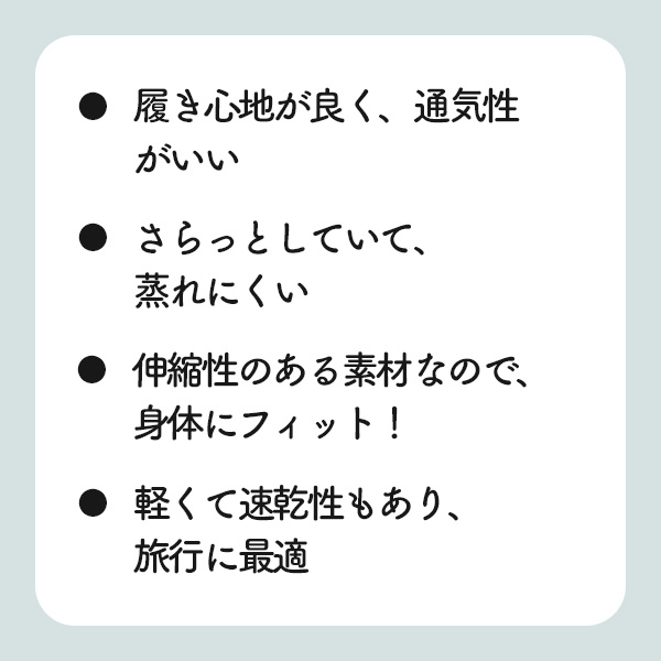 <リラックスインナーシリーズ> さらりとソフト、快適な吸放湿性のストレッチメッシュ素材