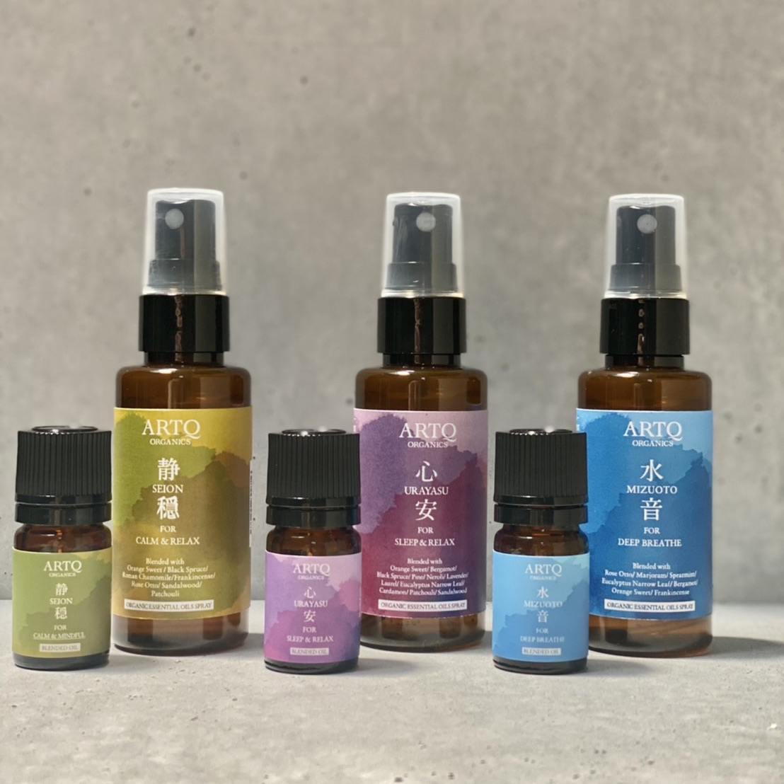 ブレンド内容:「水音」Orange Sweet(オレンジスウィート),Bergamot(ベルガモット),Eucalyptus Narrow Leaf(ユーカリナローリーフ).Spearmint(スペアミント),Marjoram(マージョラム),Rose Otto(ローズオットー),Frankincense(フランキンセンス)