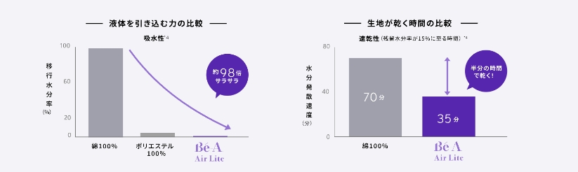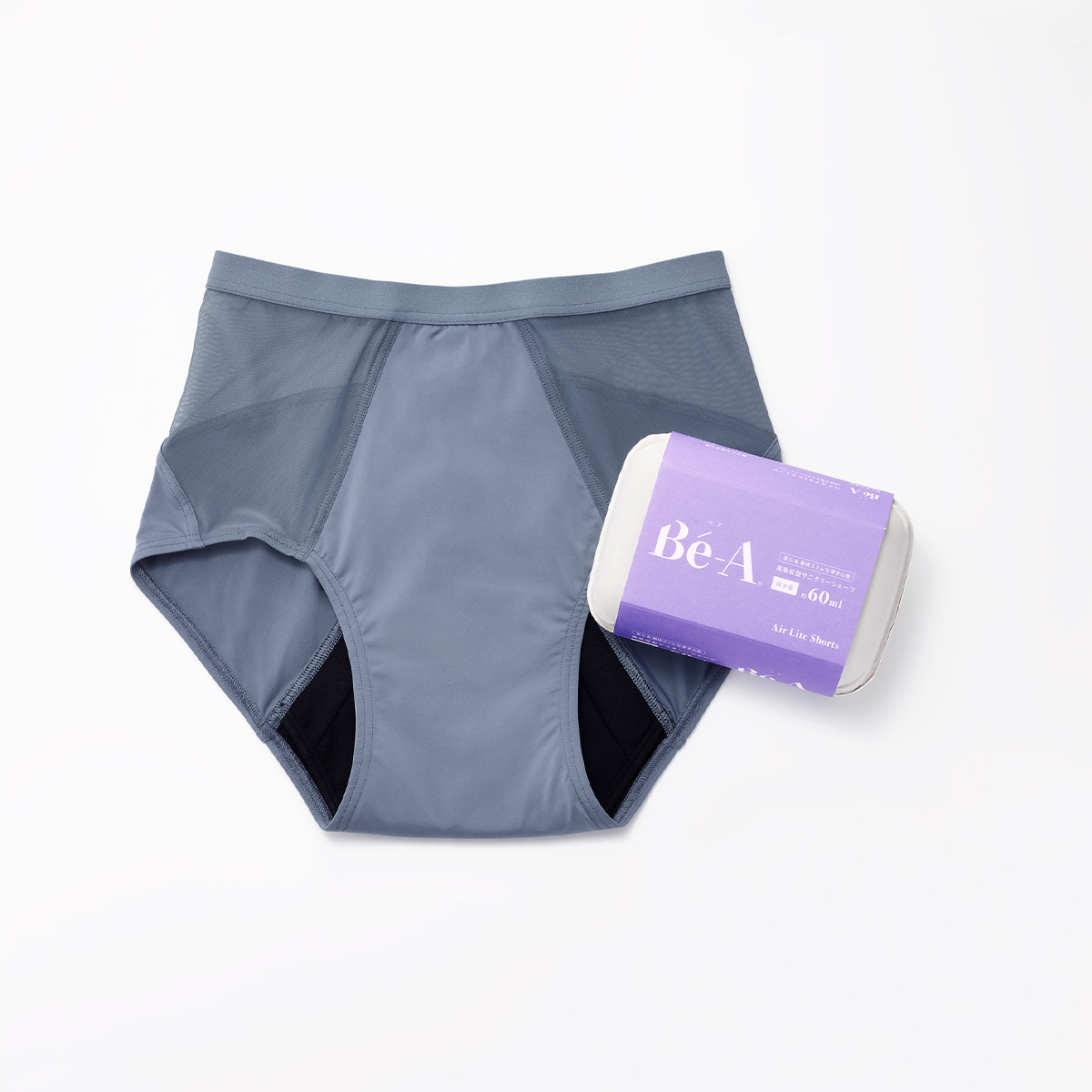 A. Bé-Aは生理用品ではありません。日本において生理用品は、肌に当てる部分が白い不織布等で作られている使い捨て紙ナプキンを基準に、医薬部外品として指定されています。ベアのショーツは、快適なサニタリーライフをサポートする吸水ショーツです。
