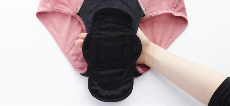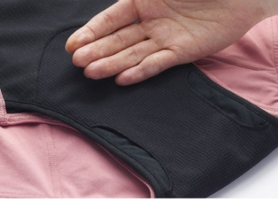 体調や状況によって量の多さが心配な時は、クロッチ(股)部分に施したウィングポケットを使って他のサニタリーアイテムを併用いただくことも可能です。
