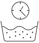 A. 標準的な浸け置き時間は30~60分程度。長時間の浸け置きは生地を傷める可能性がありますので、一晩中浸け置く等はお控えください。