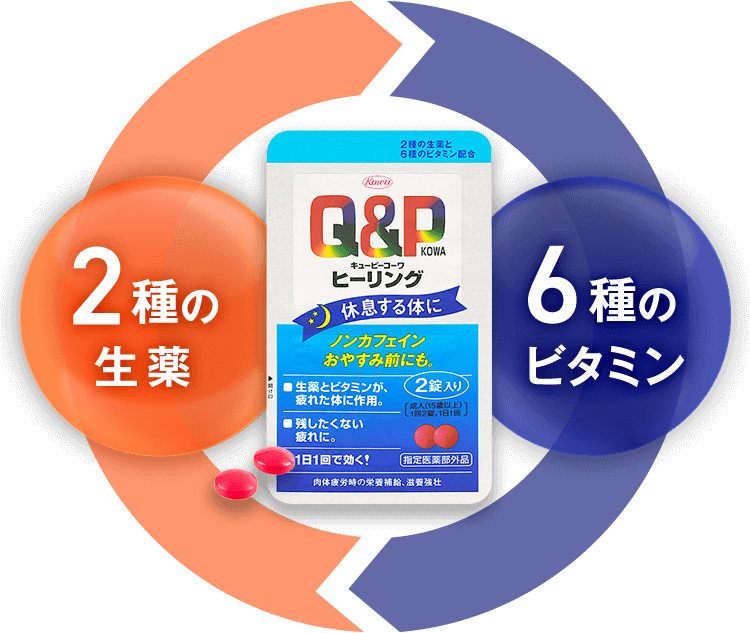 2種の生薬と6種のビタミンを同時配合 キューピーコーワヒーリング3つのポイント