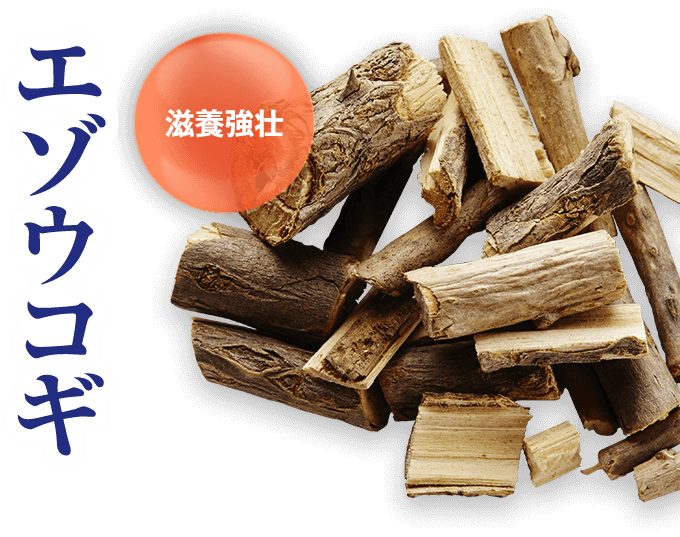 エゾウコギの根及び根茎から抽出された成分で、疲れに効くと同時に、すぐれた滋養強壮効果をあらわします。