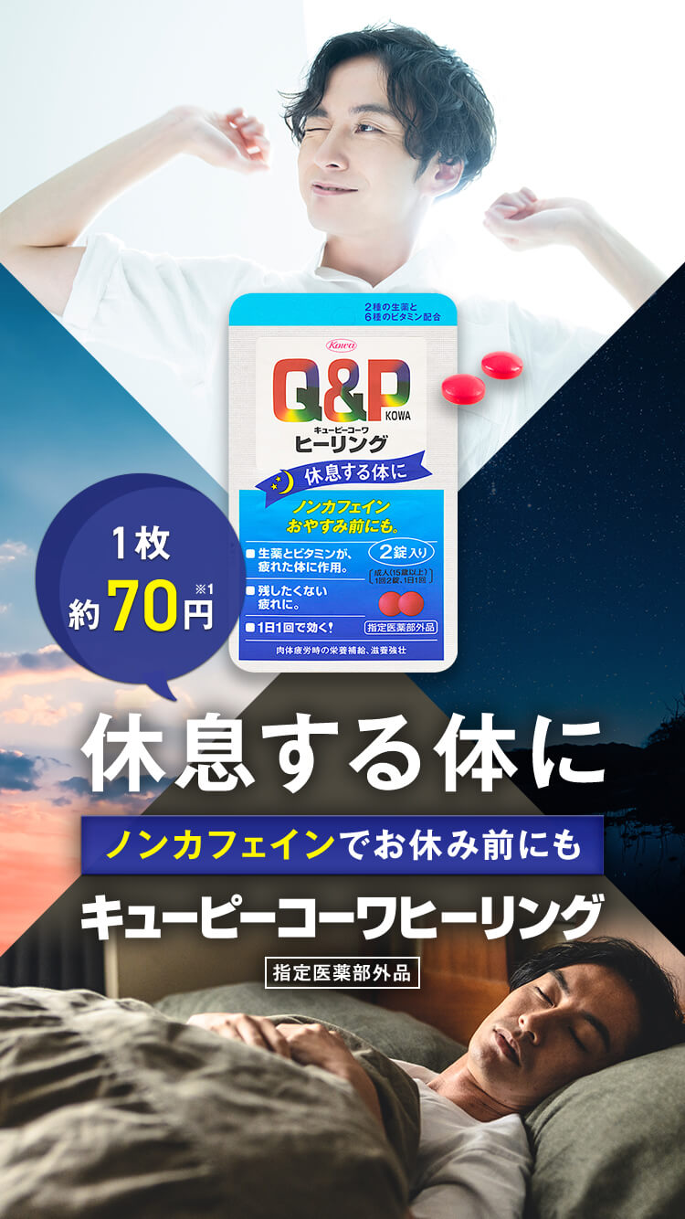 休息する体に キューピーコーワヒーリング ノンカフェインでお休み前にも