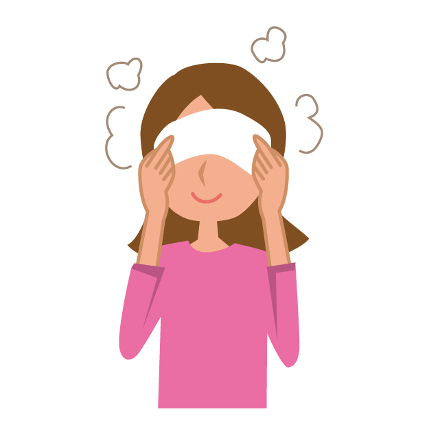 眼が疲れたなぁと思ったら、蒸しタオルで眼を温めてみてはいかがでしょうか。血行が促され、眼の周囲の筋肉の緊張がほぐれます。