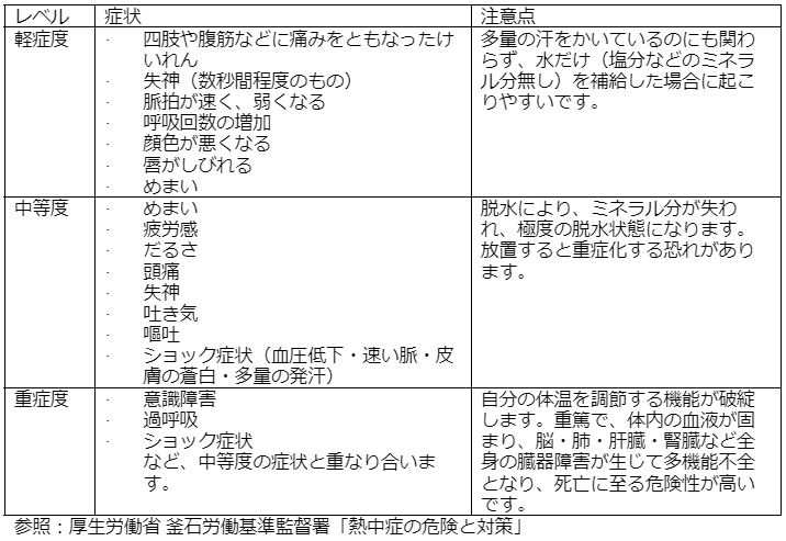 熱中症になると次のような症状が現れます。