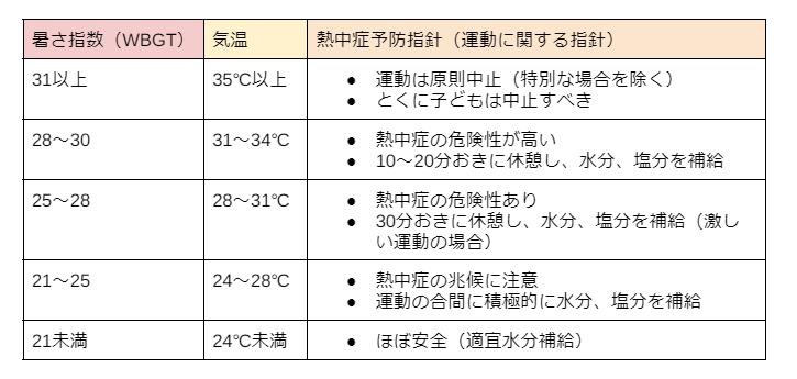 参考:日本スポーツ協会「熱中症予防運動指針」