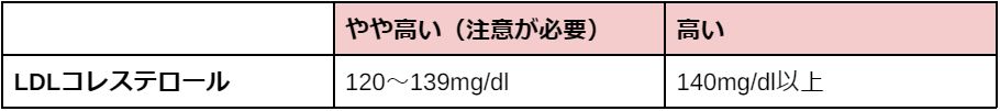 LDLコレステロール値は血液検査でわかります。高い人は、会社の健康診断や人間ドックで指摘される場合が多いでしょう。「高い」と言われる基準を表に示しました。