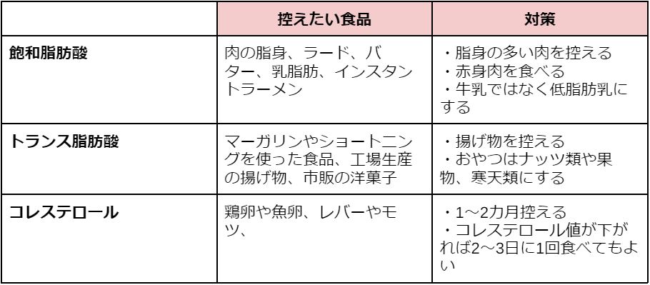 <1>飽和脂肪酸、トランス脂肪酸、コレステロールの摂取量を減らす