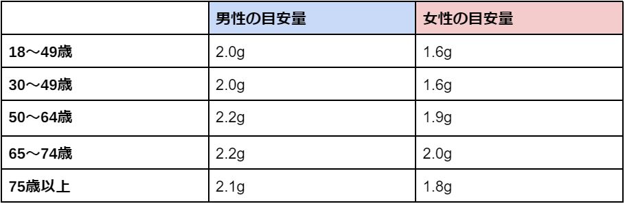 毎日の食事に取り入れてみるとよいでしょう。日本人の食事摂取基準(2020年版)では、1日の摂取目安量を表のとおり定めています。