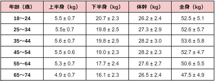 参考「日本人筋肉量の加齢による特徴」/谷本 芳美, 渡辺 美鈴, 河野 令, 広田 千賀, 高崎 恭輔, 河野 公一