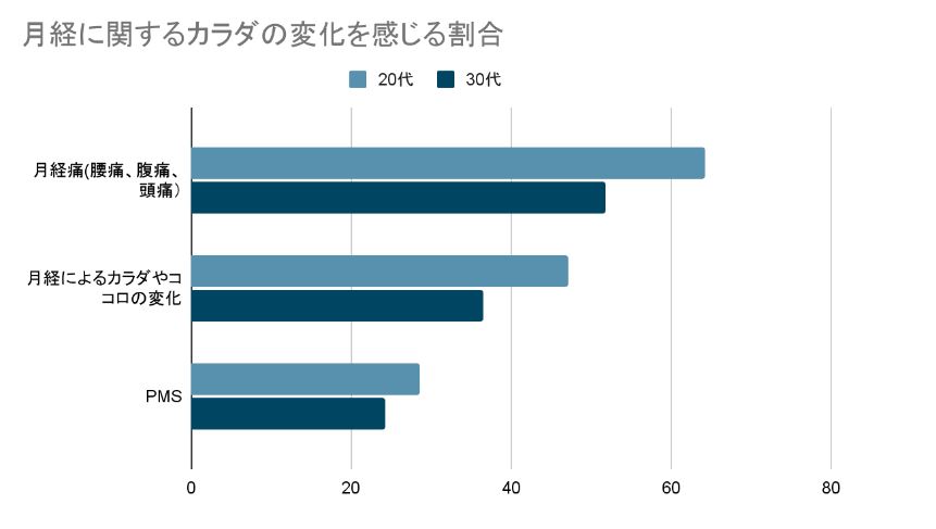 内閣府の調査によると、20代から30代の7~8割が月経に関する何らかの変化を感じ、3割近くの人がPMSの変化を感じています。