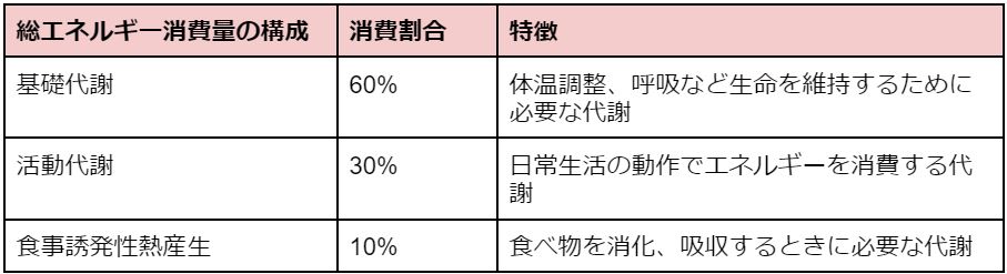 基礎代謝は活動代謝と違い、呼吸や睡眠など動いていないときでも、体内のエネルギーを使います。1日のエネルギー消費量が高くなるほど、体脂肪の燃焼効率も上がるため、痩せやすい体に変化するのです。