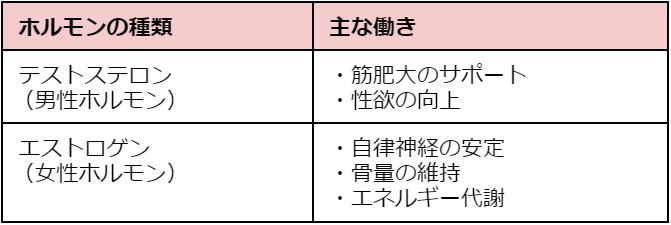 ホルモンの分泌量が減ると、筋肥大効率やエネルギー代謝が悪くなるため、基礎代謝も下がりやすくなるのです。