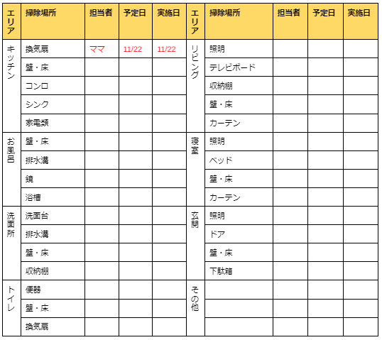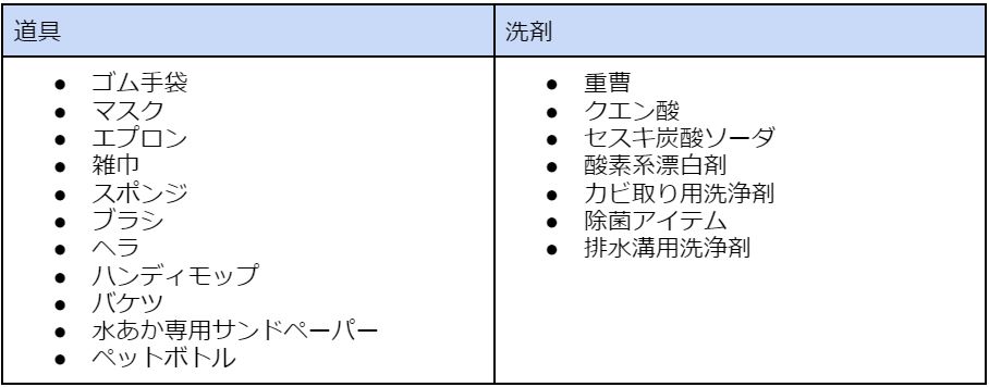 リストは一例なので、住まいの環境や汚れ具合に合わせて適宜追加・調整してください。