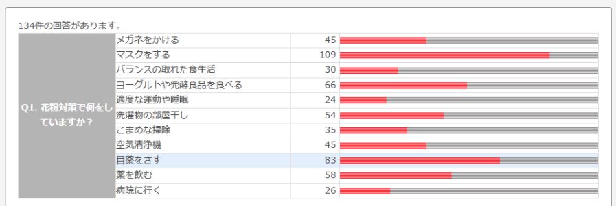20~80代の、花粉症で苦しむハピネスダイレクト会員の男女134名に対して、実施している花粉対策について聞いてみました。