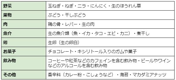下記の食べてはいけないもの、注意が必要なものを必ず知っておきましょう。