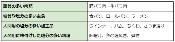 たとえば、脂質や糖質、塩分の多いものばかりをあげるのは待ってください。肥満の原因を作るだけでなく、肝臓の数値や中性脂肪値、コレステロール値などの健康診断の数値を悪くしてしまいかねません。