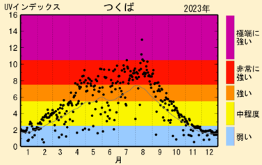 紫外線量がいつ多くなるのか、季節や時間帯を把握しておくと、対策がとりやすくなります。気象庁の紫外線に関するデータを参考に、紫外線量の推移をみていきましょう。