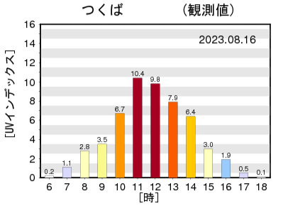 参照:日最大UVインデックス(観測値)の年間推移グラフ/気象庁1日の中で最も紫外線が多いのは、太陽が頭上にくる正午をはさむ時間帯である午前10時から午後2時です。屋外で過ごすときは、しっかり紫外線対策をしましょう。