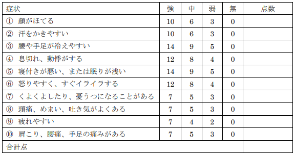 更年期障害によるつらい症状が日常生活に支障を来している場合には、医療機関での治療が必要となる場合があります。目安が分からない方は、簡略更年期指数(SMIスコア)を元にご自身の状態をチェックしてみましょう。
