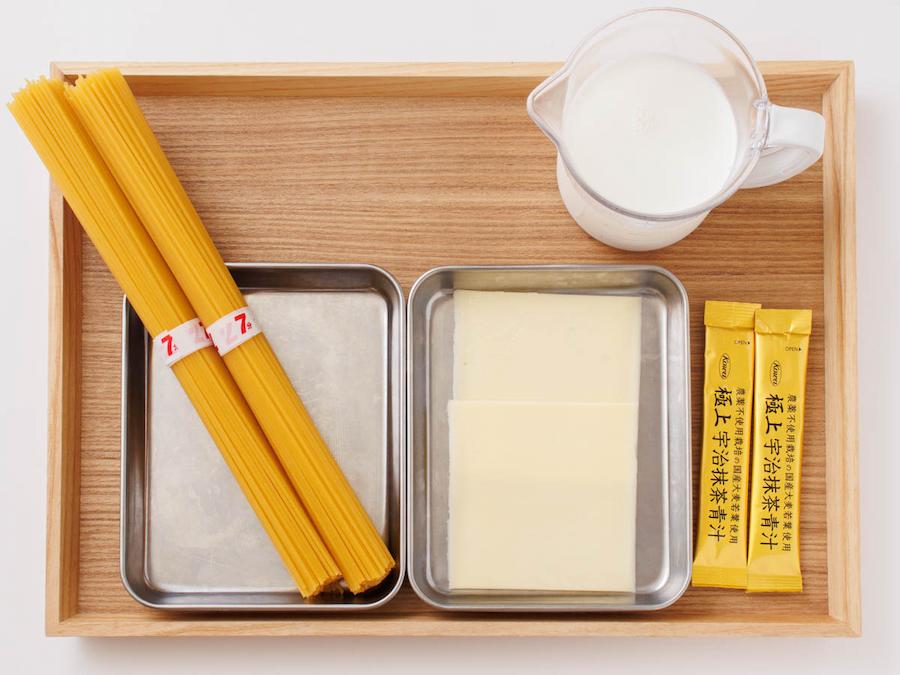 今回のようなパスタに加えるアレンジはもちろん、水やお湯で溶かして、食事と一緒に飲んでも。抹茶の味わいで、お茶感覚で飲めるのがうれしいポイントです。