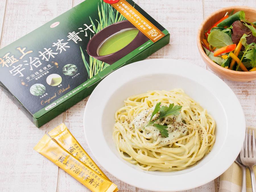 何かと偏りがちな麺料理。野菜やタンパク質源を加えられないか検討したうえで、手軽な極上 宇治抹茶青汁をプラスするのもよいでしょう。
