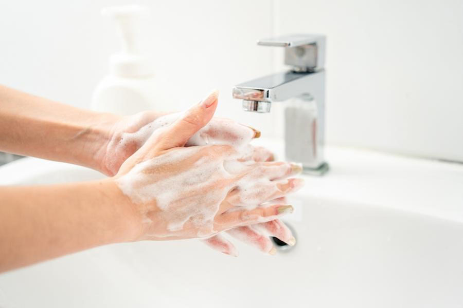 石鹸をよく泡立て、手のひら・手の甲・指先・指の間・親指・手首の順で念入りに洗いましょう。石鹸がないときでも、流水で念入りに洗えば多くの病原体を減らせます。流水で洗った後、さらに消毒液を使用するとよいでしょう。