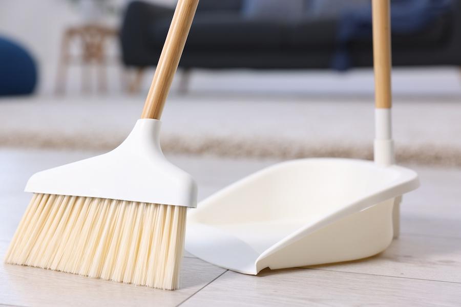 まず、ホウキとチリトリを使って、ベランダにある葉っぱや大きなゴミを取り除きます。集めたゴミは流さず、まとめて捨てましょう。