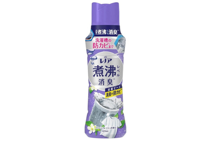 ひとつで洗濯物の消臭から洗濯槽の防カビ対策まで完結する一品。新しく改良された抗菌ビーズが、衣類の繊維にもぐりこみ、黄ばみやニオイを防ぎます。爽やかなフレッシュグリーンの香りも魅力です。通常の洗剤と柔軟剤にプラスしてみてください。