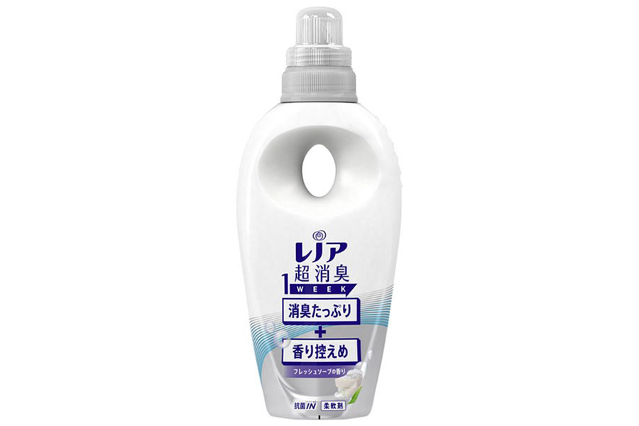 柔軟剤にありがちな強めの香りを抑えたアイテム。フレッシュソープのやさしい香りで、キツイ香りが苦手な方でも使いやすいように設計されています。香りが控えめだが、消臭対策はしっかり。通常の洗濯ではなかなか落ちない生乾き臭や汗のニオイ、シーツや枕についた体臭も取り除きます。