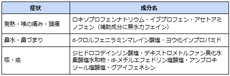 症状にあった薬を選ぶと、つらさを和らげられます。風邪の症状に効く成分例は以下のとおりです。