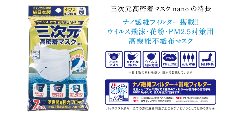 「三次元 高密着マスク nano」は、ナノ繊維フィルターと帯電フィルターのダブル構造で、空気中の微粒子やウイルス飛沫などをしっかり捕集。また、すき間を作らず顔にぴったり密着する設計が、冷たい外気の侵入を抑えます。 さらに、口元に空間を作るマウスバー搭載で、息苦しさを軽減し快適な呼吸をサポート。高い捕集性能と快適な着用感を両立し、長時間の使用にもおすすめのマスクです。