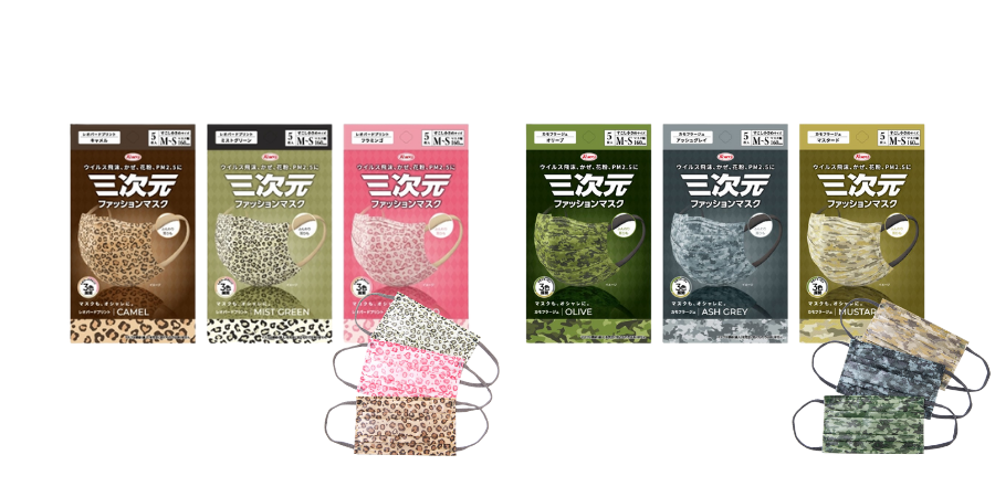個性を引き立てるデザイン性と、機能性を兼ね備えた「三次元ファッションマスク」。カモフラージュやレオパードといった2種類3柄のスタイリッシュな柄展開で、コーディネートに合わせたマスク選びを楽しめるのです。 見た目だけでなく、花粉・ウイルス飛沫・PM2.5など汚染空気中の微粒子を捕集する高機能フィルターも搭載。快適な着用感と高い密着性を持ち合わせており、外出先や人と会う場面でも安心感と好印象を両立するため、TPOを意識したマスク選びにもおすすめです。