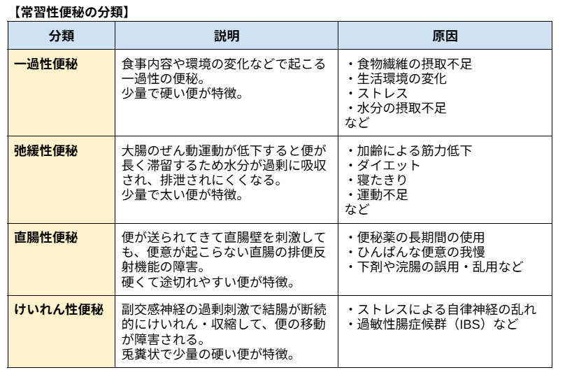 排便回数減少型と排便困難型に分けられる慢性的な便秘症
