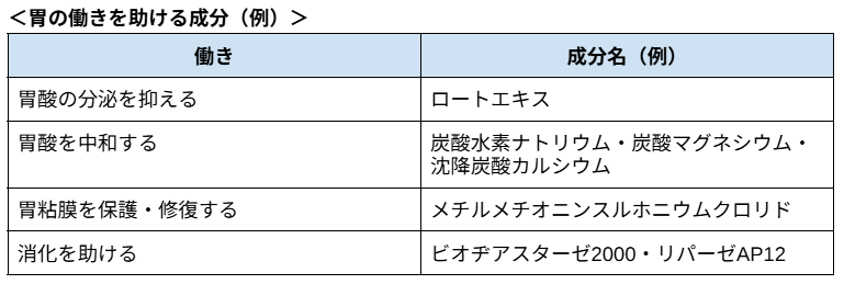 薬選びは成分の確認からです。胃酸の分泌を抑える成分・胃酸を中和する成分・胃粘膜を保護や修復する成分・消化を助ける成分など、自分の症状に合ったタイプを選びます。