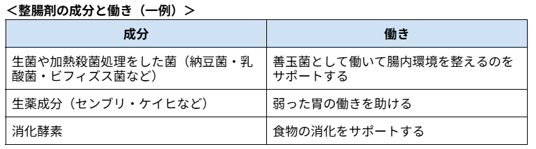 整腸剤は、腸内環境をサポートする薬です。善玉菌を補ったり、働きを助けたりして、腸の働きを正常な状態に近づける作用を期待できるでしょう。腸の動きに作用し、便の状態を整えるのに役立つ成分を含む製品もあります。