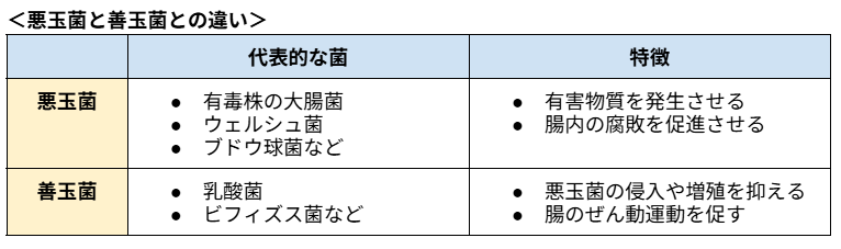 年齢を重ねるとともに善玉菌は減少し、悪玉菌が優位になりやすいです。たとえば、悪玉菌の一種であるウェルシュ菌は、中高年になると増加。腸が老化しているサインともいわれています。